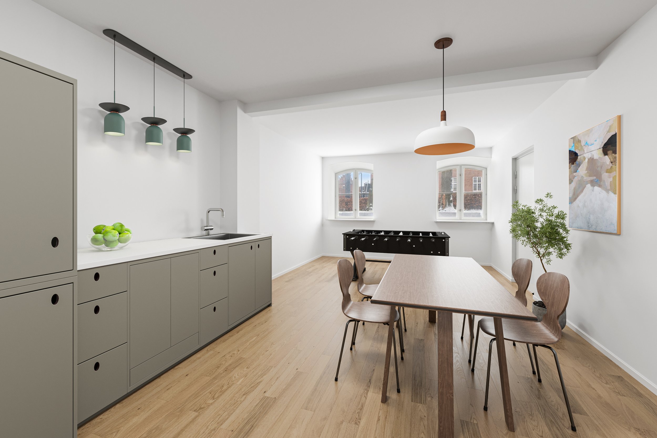 På Albanigade 23 ligger dette netop nyistandsatte kontorlejemål i parterre med en markant placering lige over for retsbygningen.