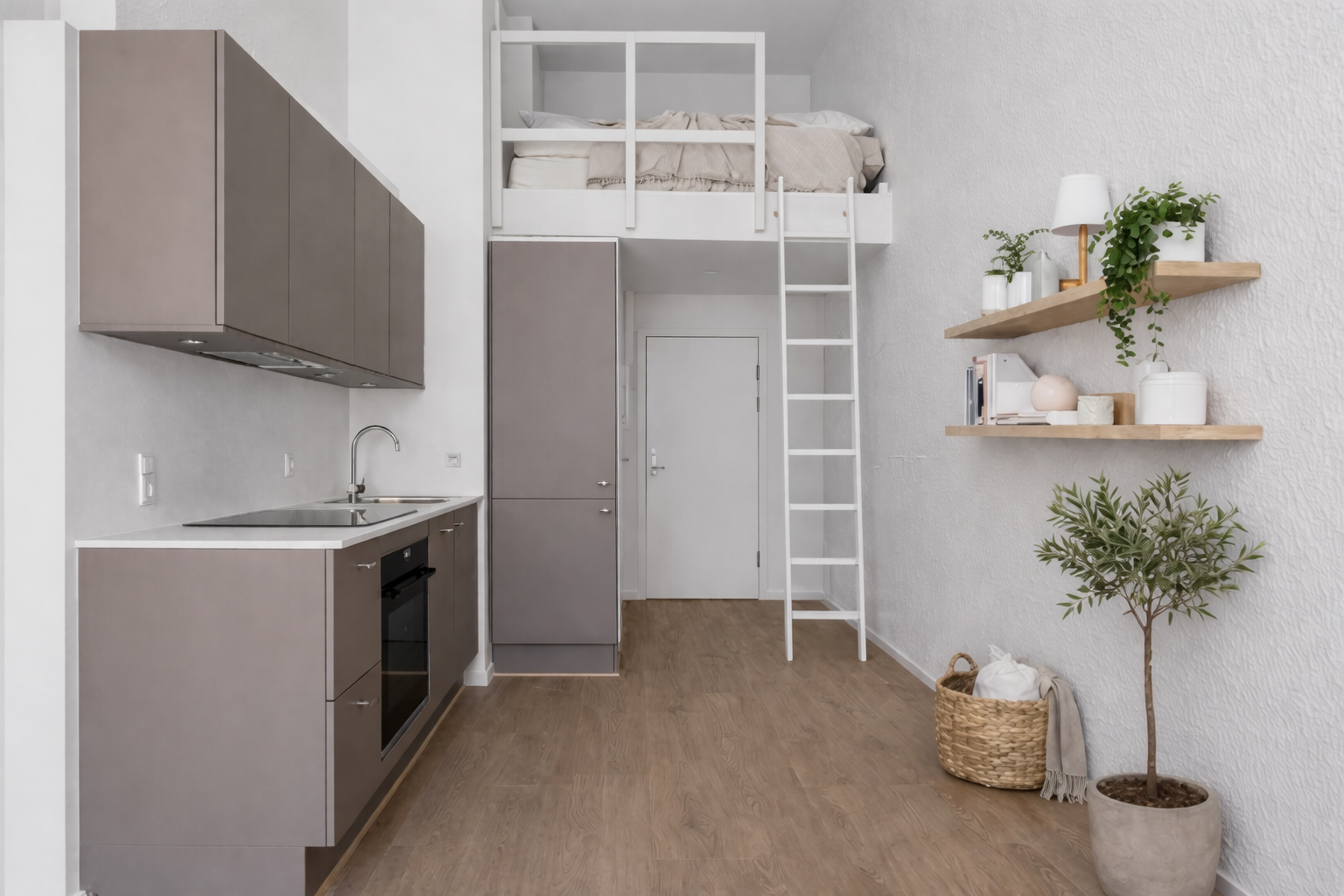 I denne 1-værelses lejlighed på 36 m² får du højt til loftet, et stort vinduesparti og en hems, der giver boligen en let og luftig fornemmelse og gode muligheder for opbevaring.