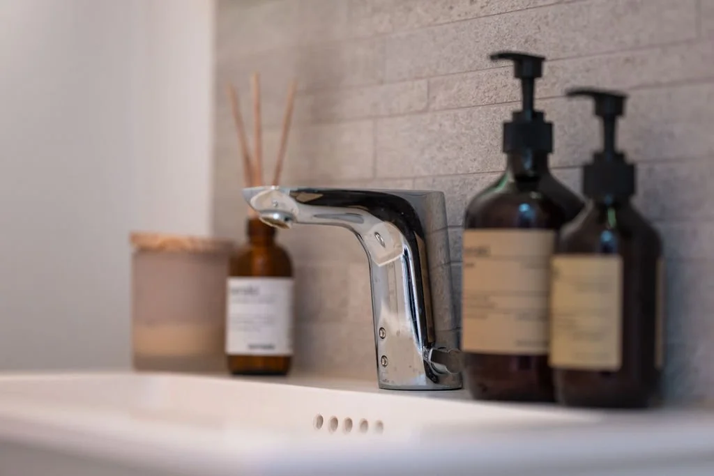 Der er praktisk kværn til køkkenaffald i køkkenvasken og kogende vand i vandhanen.