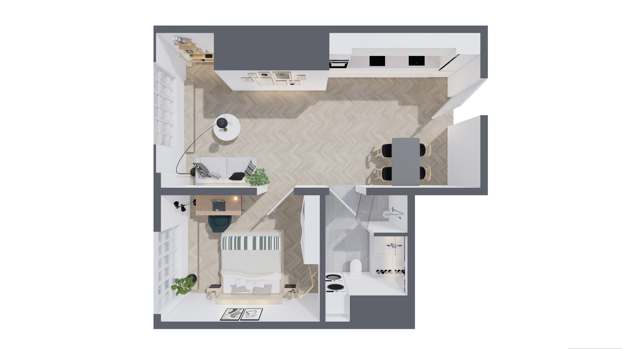 Her får du en dejlig egoistlejlighed med fine, sprossede vinduer mod Hunderupvej, et rummeligt badeværelse og et åbent køkken-alrum i forbindelse med stuen, som giver boligen en lys og indbydende atmosfære.