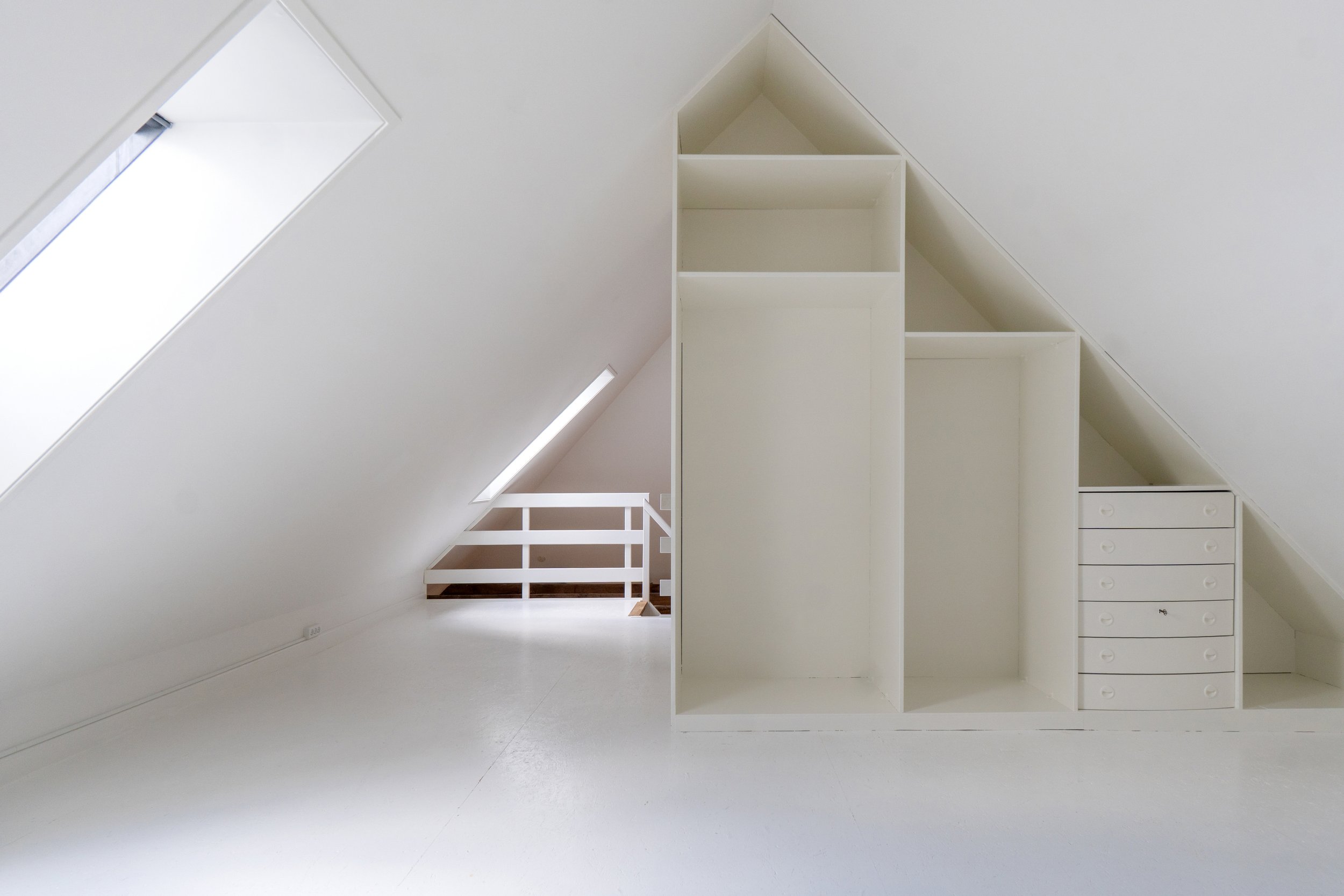 Derudover rummer boligen et dejligt soveværelse og en stor hems med snedkerlavet opbevaring, synlige hylder og indbygget reol.