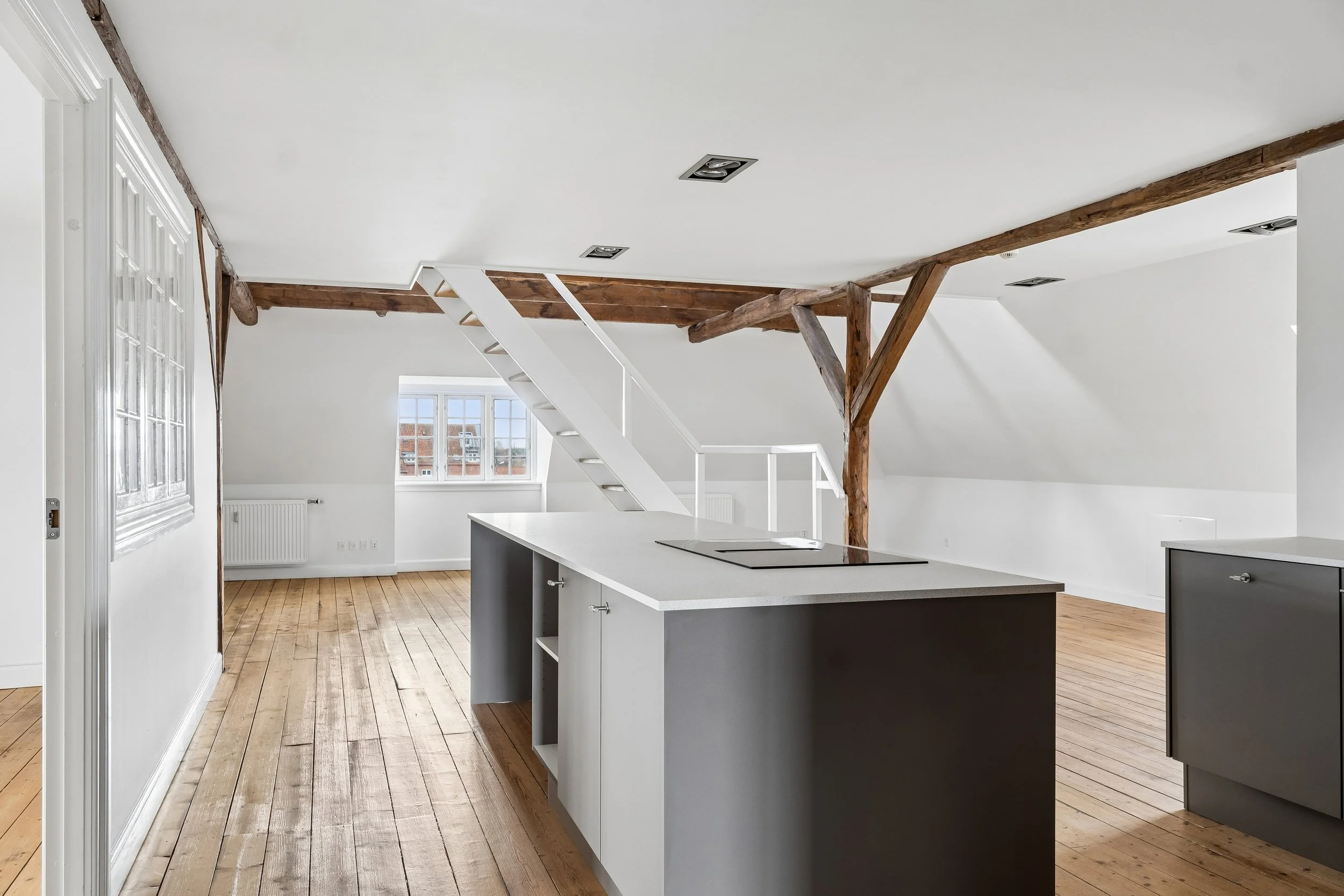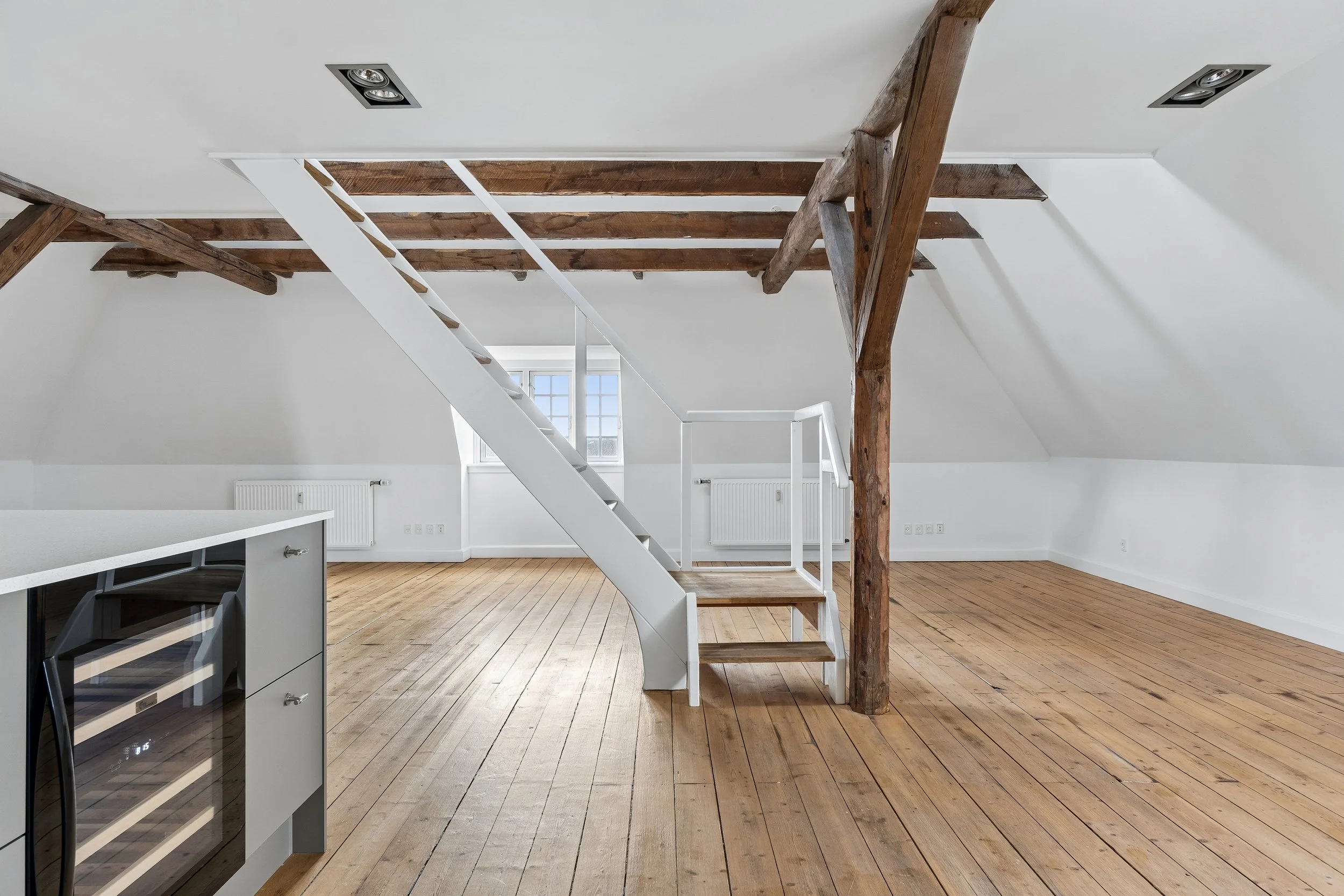 Rummelig bolig med loft til kip, elevator og mulighed for tagterrasse